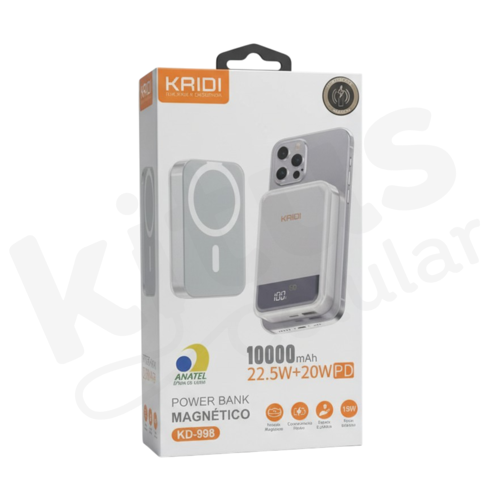 A Kaidi KD-998 é uma bateria portátil magnética de 10.000mAh com carregamento por indução e por cabo. Fixa no smartphone com ímã forte e repõe energia de forma rápida e segura, ideal para uso diário, viagens e trabalho.