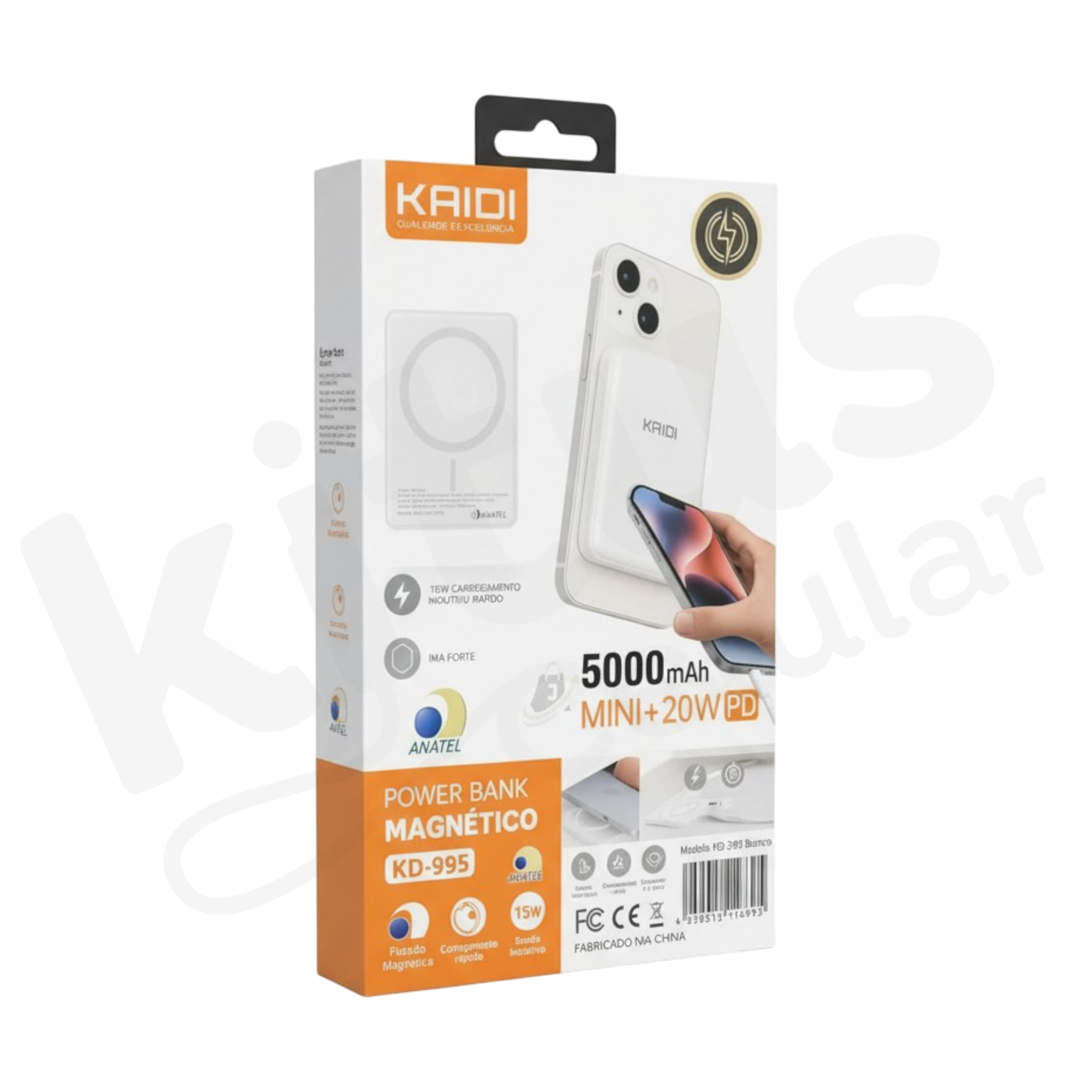 A Kaidi KD-995 é uma bateria portátil magnética de 5.000mAh com carregamento por indução e por cabo. Compacta e com ímã forte, alinha no smartphone e repõe energia com praticidade — ideal para uso diário, trabalho e viagens.