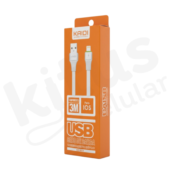 Cabo Turbo iPhone USB para Lightning Kaidi 3 metros KD-332A