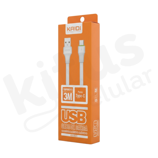 Cabo Turbo USB para Tipo C Kaidi 3 metros KD-332C