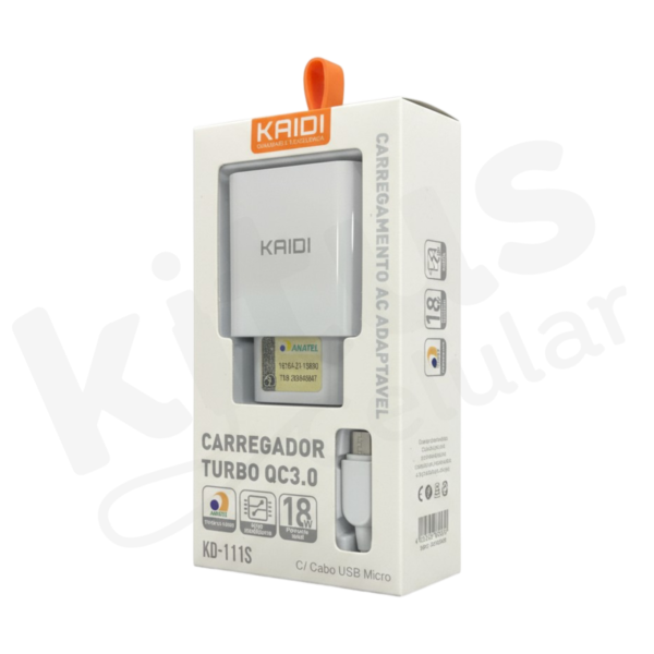 Carregador completo Kaidi Turbo 18w com cabo USB para Micro-USB KD-111S