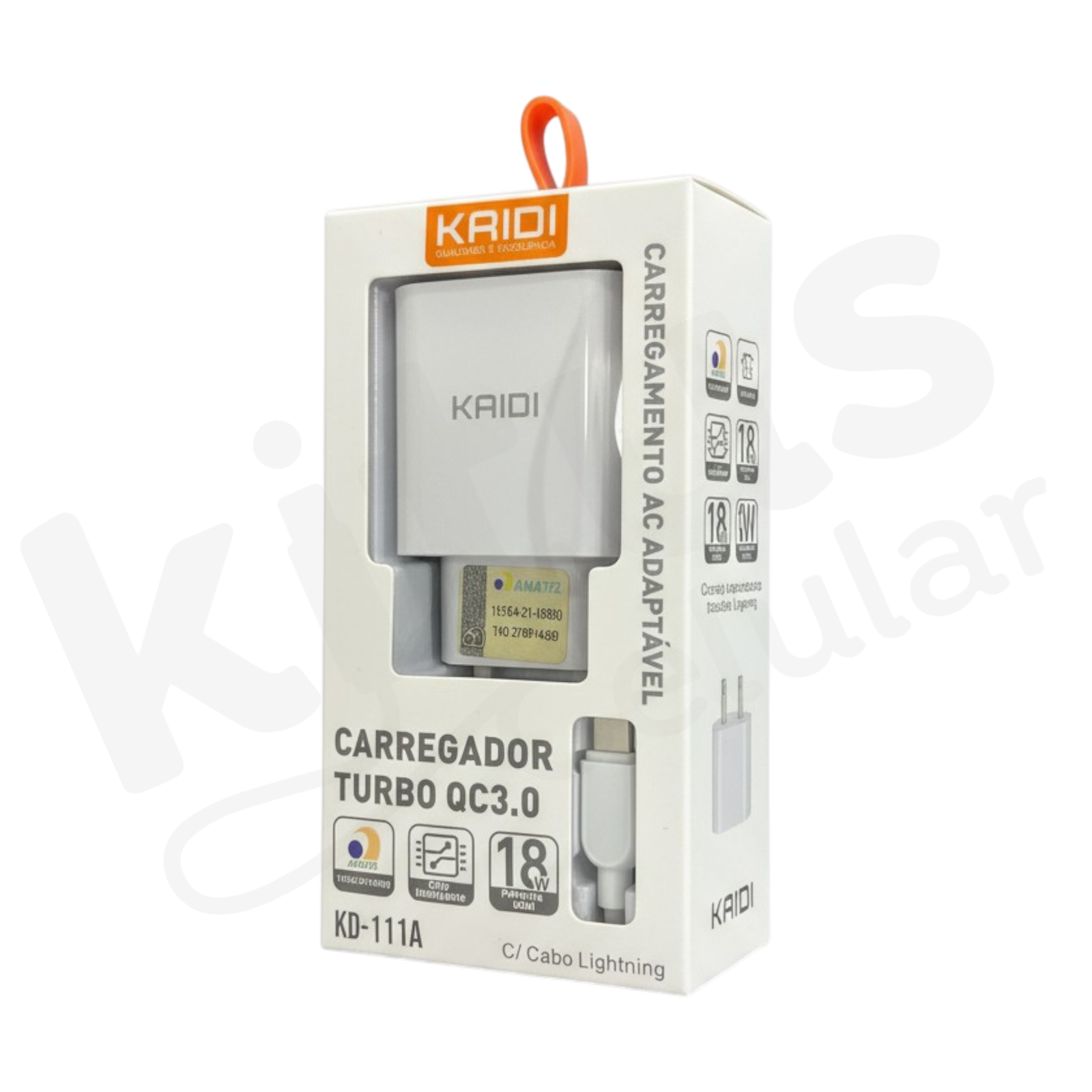 Carregador completo para iPhone Kaidi Turbo 18w com cabo USB para Lightning KD-111A