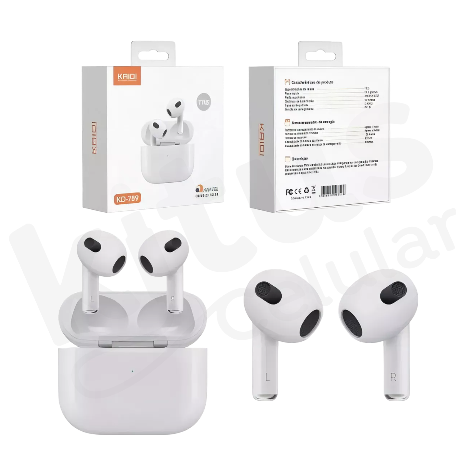 O Kaidi KD-789 (estilo AirPods 3) é um fone TWS sem fio para quem quer praticidade, som limpo e conexão estável no dia a dia. Leve e confortável, conecta em segundos e acompanha o ritmo de músicas, vídeos e chamadas.