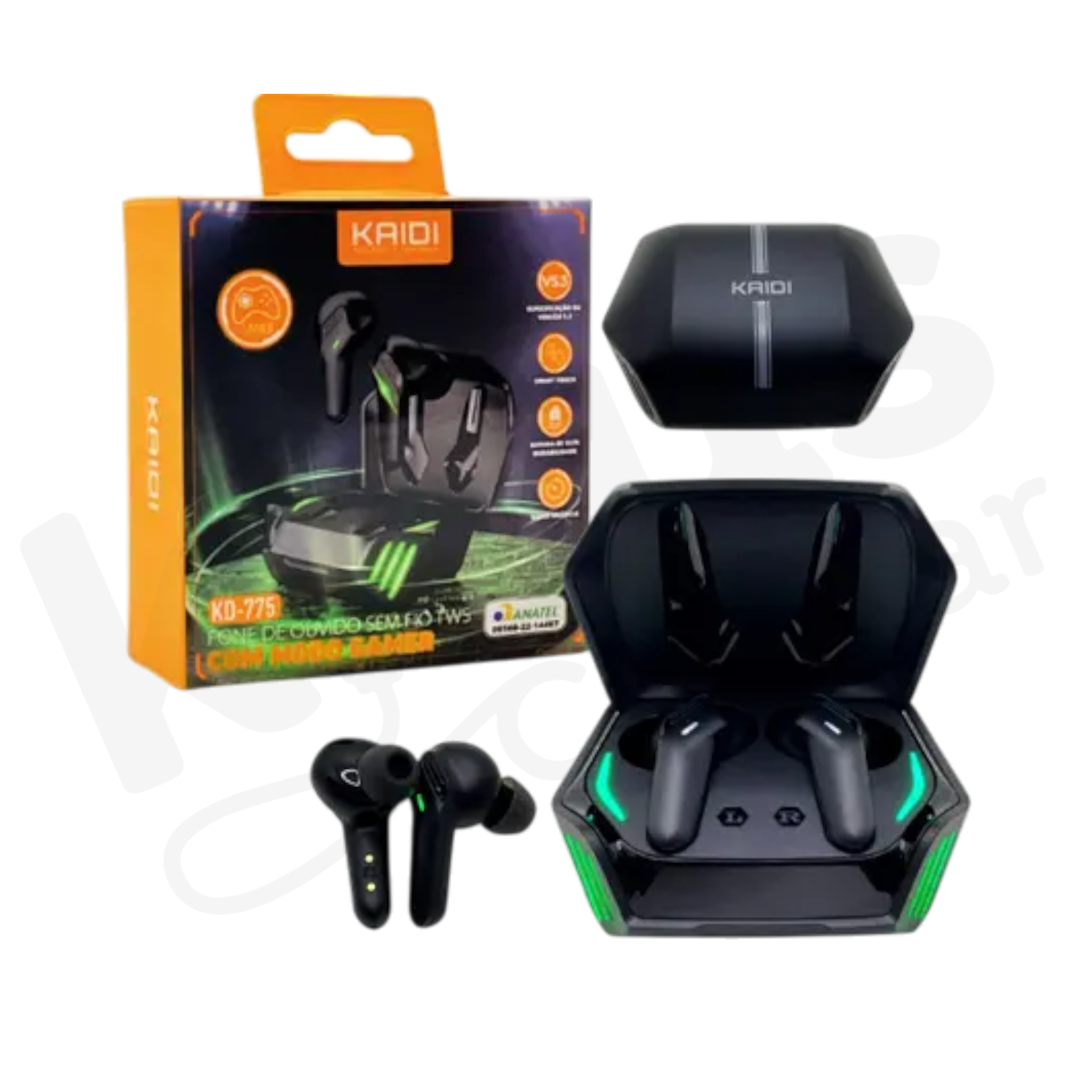O Kaidi KD-776 é um fone TWS gamer para quem quer resposta rápida no jogo, som com graves presentes e visual com LEDs. Leve e estável, conecta em segundos e acompanha músicas, vídeos, calls e partidas online sem complicação.