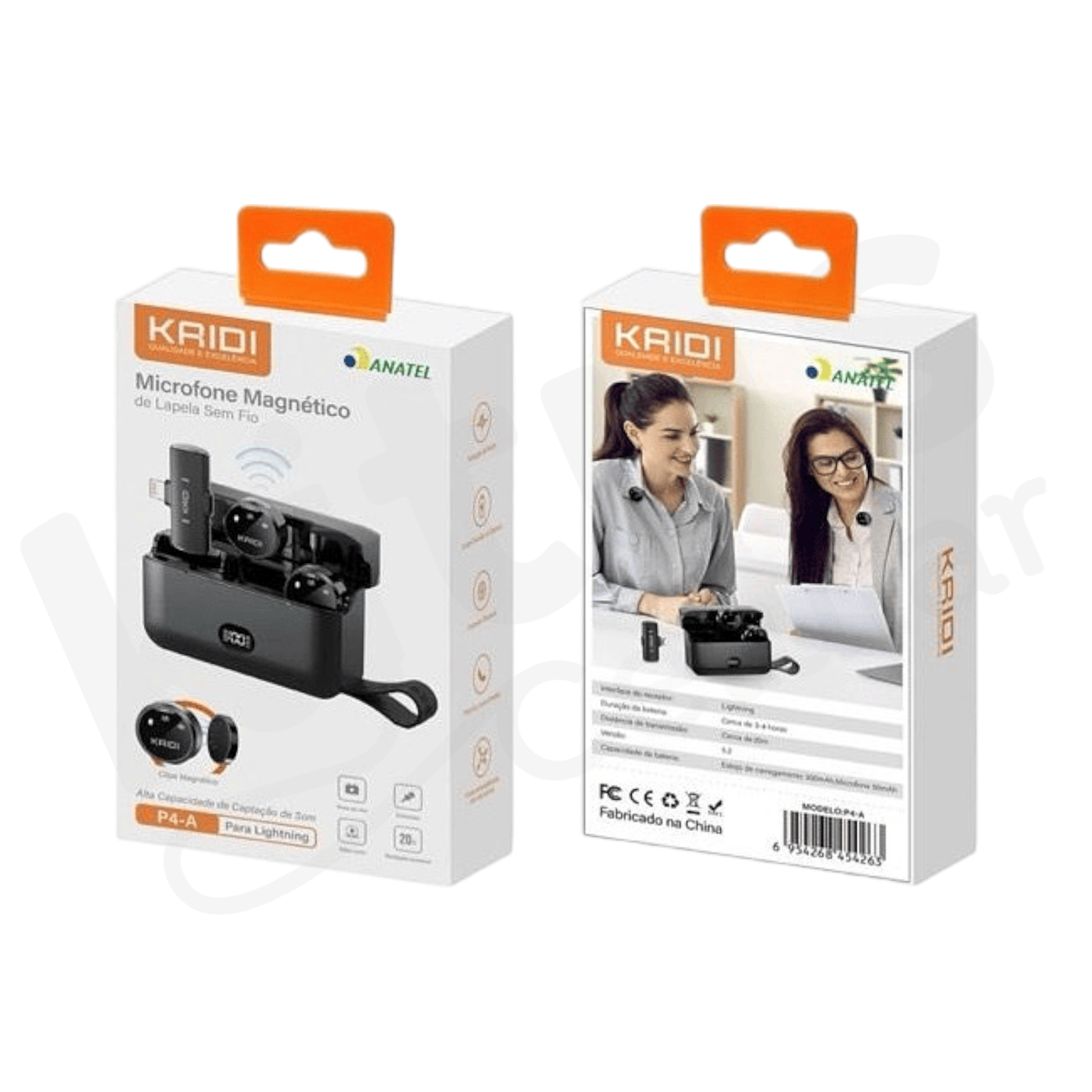 O microfone de lapela Kaidi P4A para 2 pessoas (Lightning) é ideal para quem grava vídeos no iPhone com áudio mais limpo e profissional, sem depender do microfone do celular. Perfeito para entrevistas, lives, aulas, podcasts curtos e conteúdos para Instagram, TikTok e YouTube, principalmente quando duas pessoas vão falar no mesmo vídeo.